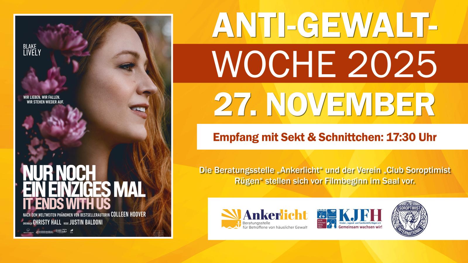 Empfang mit Sekt & Schnittchen bereits ab 17:30 Uhr (im Preis enthalten) & Vorstellung der Beratungsstelle Ankerlicht und des Vereins Club Soroptimist Rügen